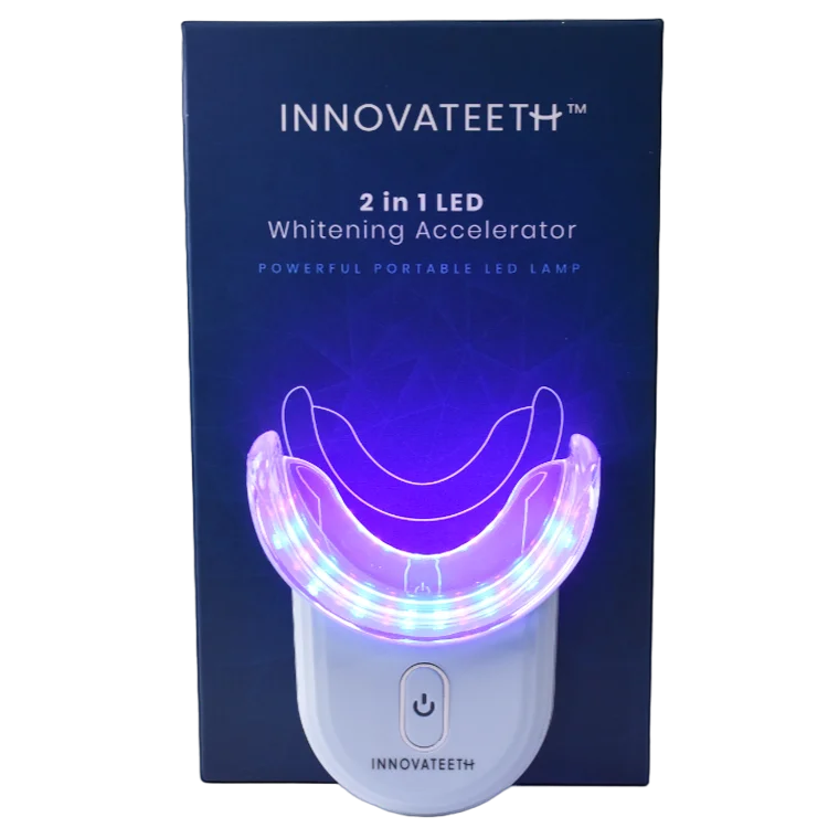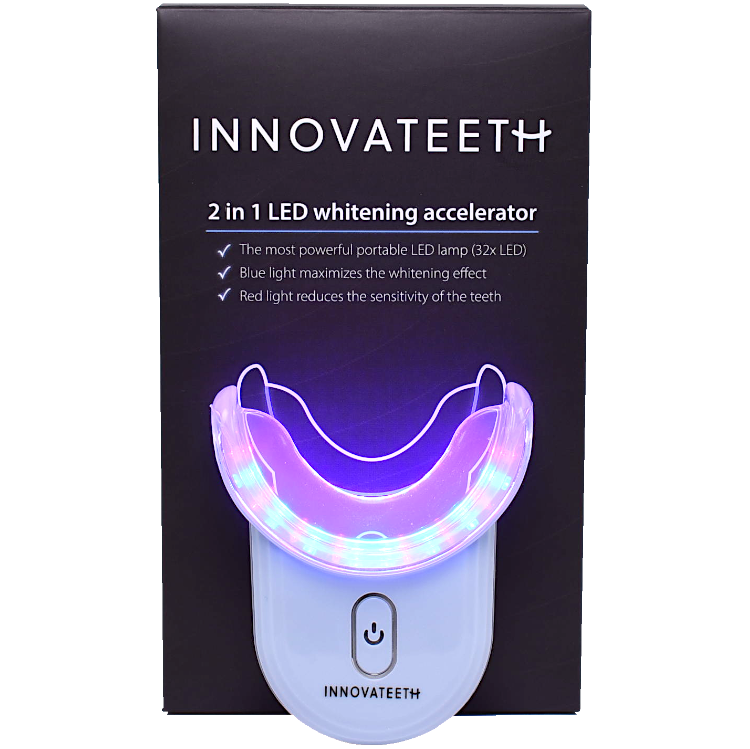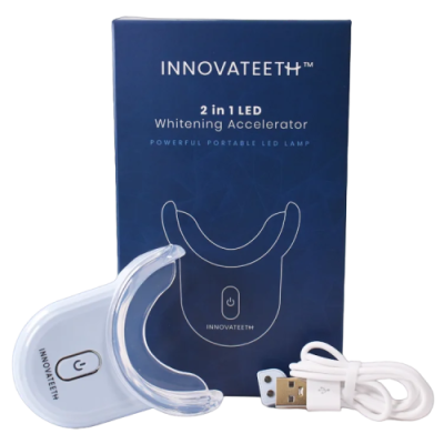 Az Innovateeth LED gyorsító bizonyítottan segíti a fehérítést a fehérítő csíkokkal együtt, és jelentősen növeli azok hatékonyságát.