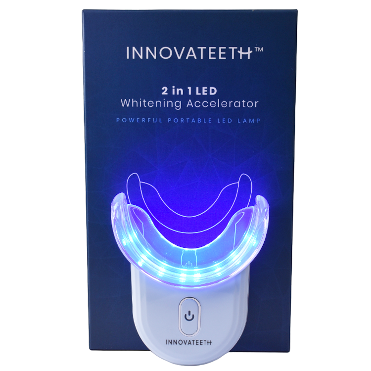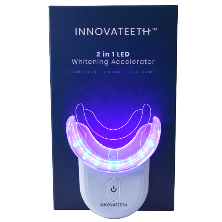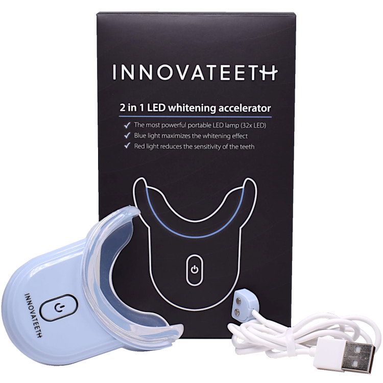 Az Innovateeth LED gyorsító bizonyítottan segíti a fehérítést a fehérítő csíkokkal együtt, és jelentősen növeli azok hatékonyságát.