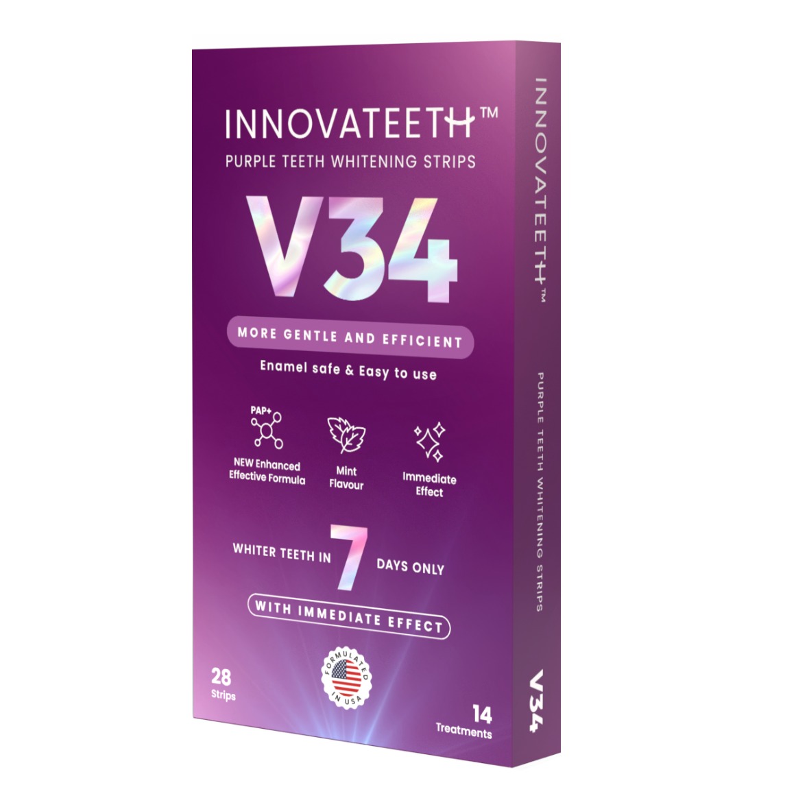 Az INNOVATEETH V34 fogfehérítő csíkok összetételüknek köszönhetően nagyon hatékonyak . Lepd meg magad egy reprezentatív mosollyal, amelyet senki sem fog hiányolni!