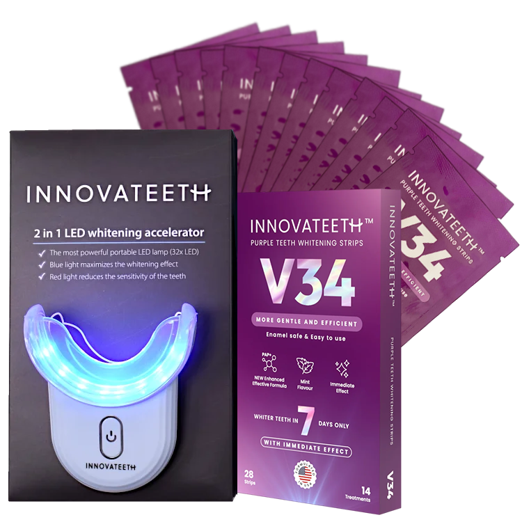 INNOVATEETH LED lámpa + fehérítő csíkok V34 csomag